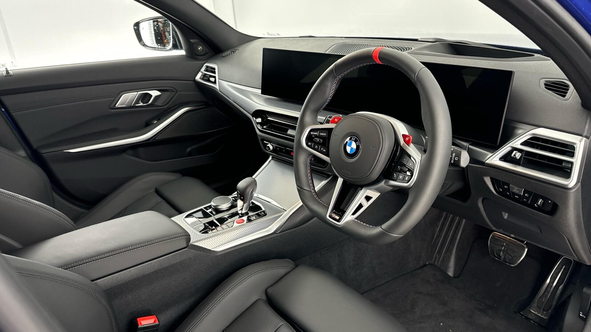 This facelifted LCI BMW M3 BiTurbo Competition is a remarkable example, having had only been used by us since new. It boasts a powerful 3.0 litre petrol engine paired with a four wheel drive drivetrain, ensuring excellent performance and control. This Euro 6 compliant vehicle comes with the Competition trim and features M Brakes with Black Calipers for superior stopping power, alongside BMW Individual Lights in Shadowline for a distinctive look. The Acoustic Glazing enhances cabin quietness, while the heated steering wheel provides comfort in colder weather.