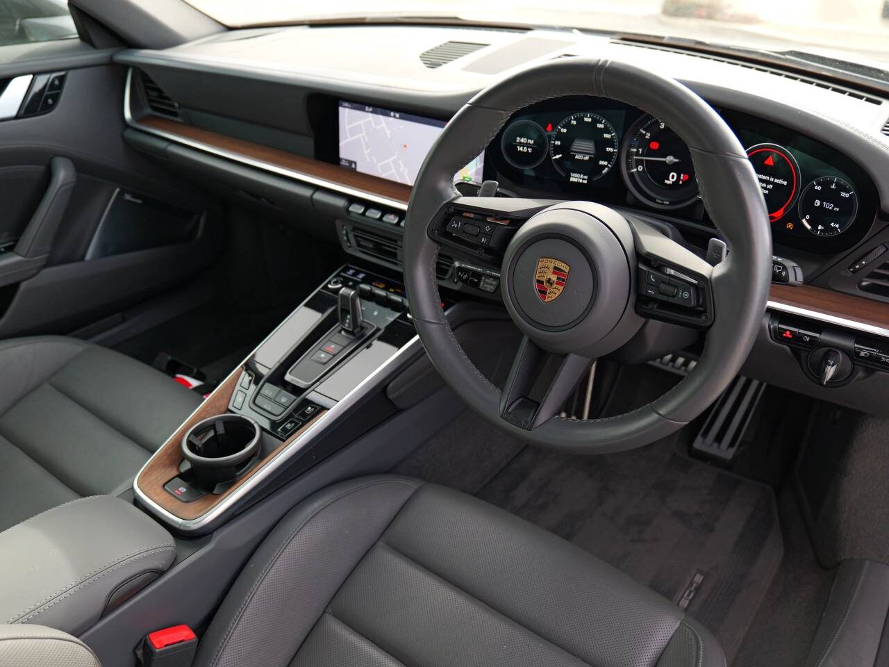 Electric slide/tilt glass sunroof, Electric folding exterior mirrors, Exterior Mirrors painted in Exterior Colour, Sports exhaust system, Front axle lift system, Light design package, 4-way electric Sports Plus seats, Seat ventilation, Heated GT sports steering wheel in leather, Storage Package, Vehicle key painted in exterior colour with leather key pouch, Fire extinguisher, Silver Grey seat belts, Air vents in leather with slats in leather, Leather sun visors, Inner door sill guards in leather, Sports Seat Plus backrests in leather with decorative inlay in leather, Vehicle documentation folder in leather, Paldao interior package, PDK gear selector in aluminium, Aluminium pedals, Illuminated door sill guards in brushed aluminium darksilver, Burmester® High-End Surround Sound System, Automatically dimming interior and exterior mirrors with integrated rain sensor, Rear wiper, ParkAssist including Surround View, Adaptive cruise control, HomeLink®, Porsche Entry & Drive