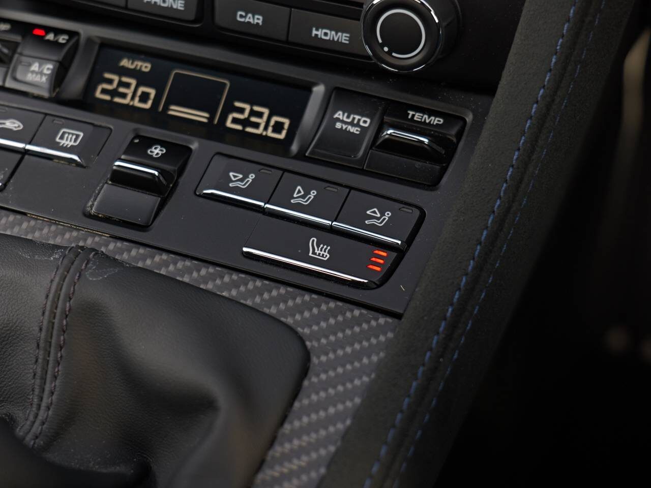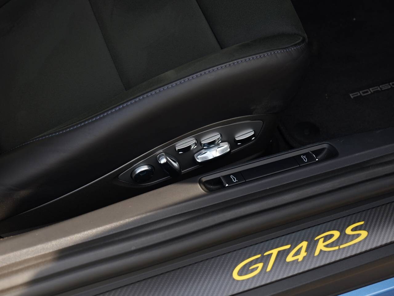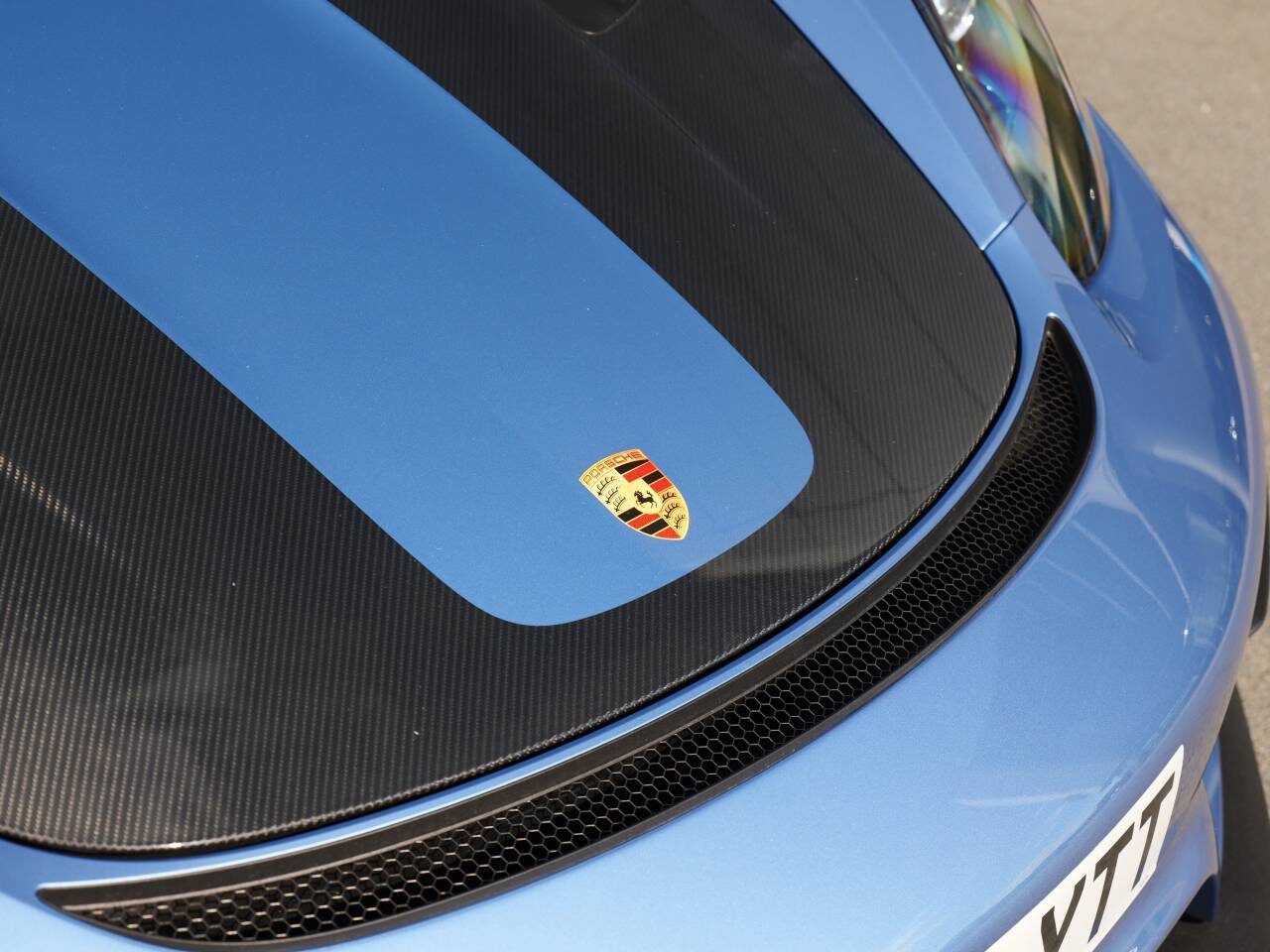 Weissach-package without roll cage, Window triangle trims in carbon (front), Accent package logos – Indigo Blue, Front axle lift system, Chrono Package, Porsche Ceramic Composite Brake (PCCB), Brake calipers painted in Black (high-gloss), Wheels painted in Satin Neodyme, Adaptive Sports seats Plus (18-way, electric), Seat heating, Steering wheel rim and PDK gear selector in smooth-finish black leather, Passenger footwell storage net, Smoking package, Seat belts in Deep Sea Blue, Instrument dials white, Chrono stopwatch instrument dial white, Door trim package leather/Race-Tex, Sun visors Race-Tex, Storage compartment lid in Race-Tex with ‘PORSCHE’ logo, Door sill guards in carbon, illuminated, BOSE® Surround Sound System ?, Light design package, Automatically dimming mirrors with integrated rain sensor, ParkAssist (rear) with reversing camera