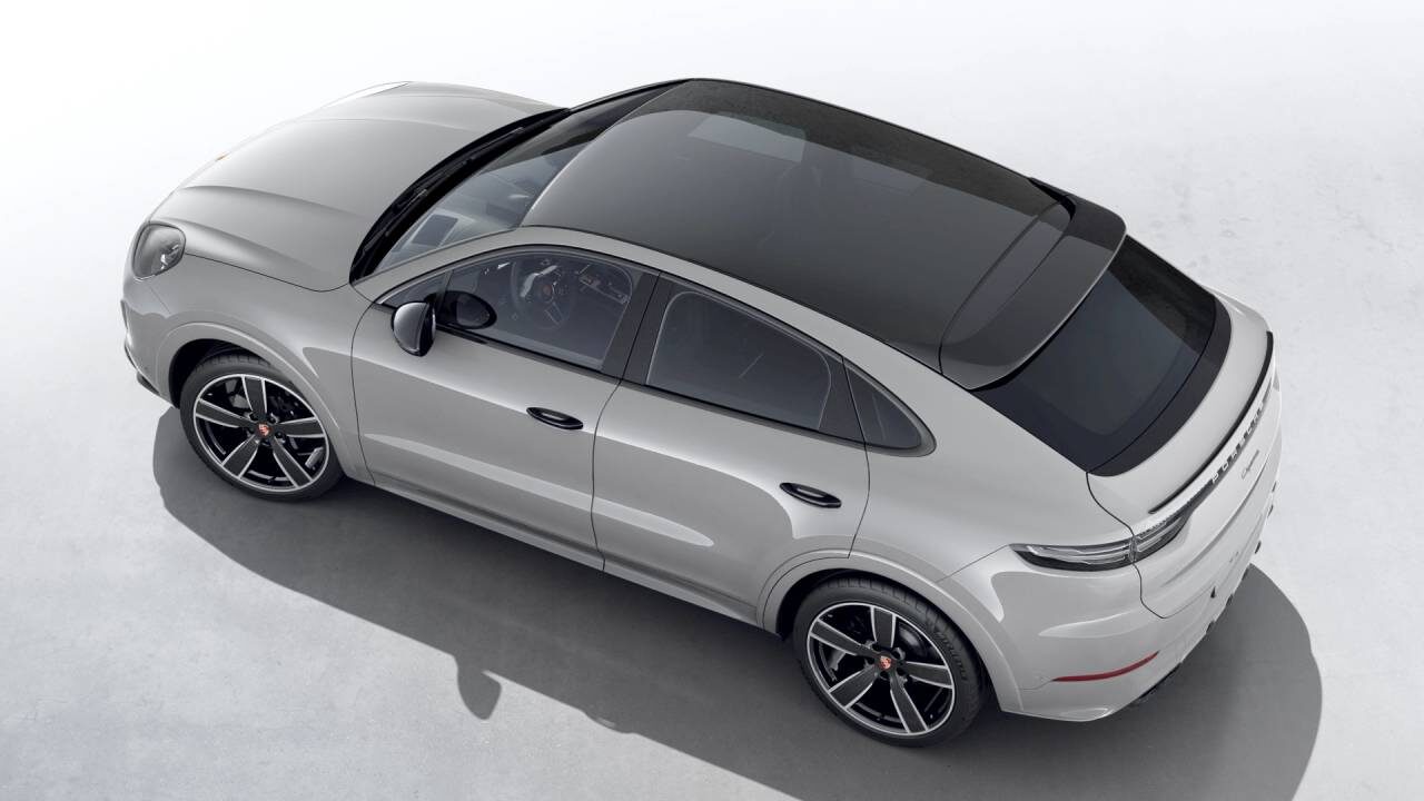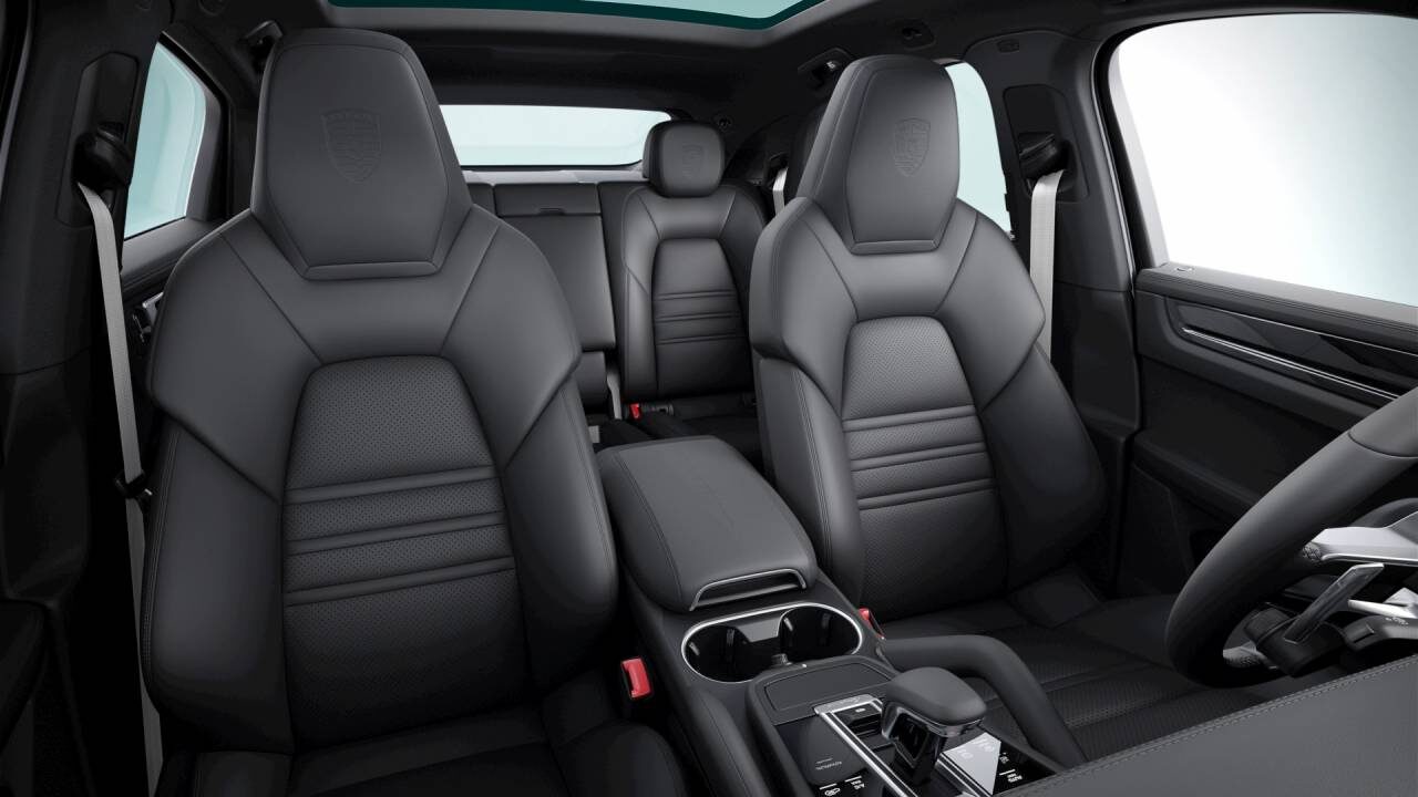 SportDesign package painted in Black (high-gloss), Roof spoiler painted in Black (high-gloss), Exterior mirrors painted in Black (high-gloss), Door handles painted in black (high-gloss), ‘PORSCHE’ logo LED door courtesy lights, Exclusive Design fuel filler cap, Adaptive air suspension with levelling system and height adjustment incl. Porsche Active Suspension Management (PASM), Sport Chrono Package with Porsche Subsecond Design Clock, Rear-axle steering including Power steering Plus, 22-inch Cayenne Sport Classic wheels in Black (high-gloss) incl. wheel arch extensions in exterior colour, Ioniser, Adaptive Sports Seats in Front (18-Way, electric), Interior package in Black (high-gloss), Smoking package, Model logo embossed on centre console armrest, Smartphone compartment with wireless charging, Interior trim package with decorative stitching and seat centres in leather in contrasting colour – Crayon/Black, Tinted LED main headlights including Porsche Dynamic Light System (PDLS), Tinted LED taillights including light strip, Lane Change Assist (blind spot monitoring), Adaptive Cruise Control incl. Emergency Stop Function and Lane Keep Assist with Speed limit indicator