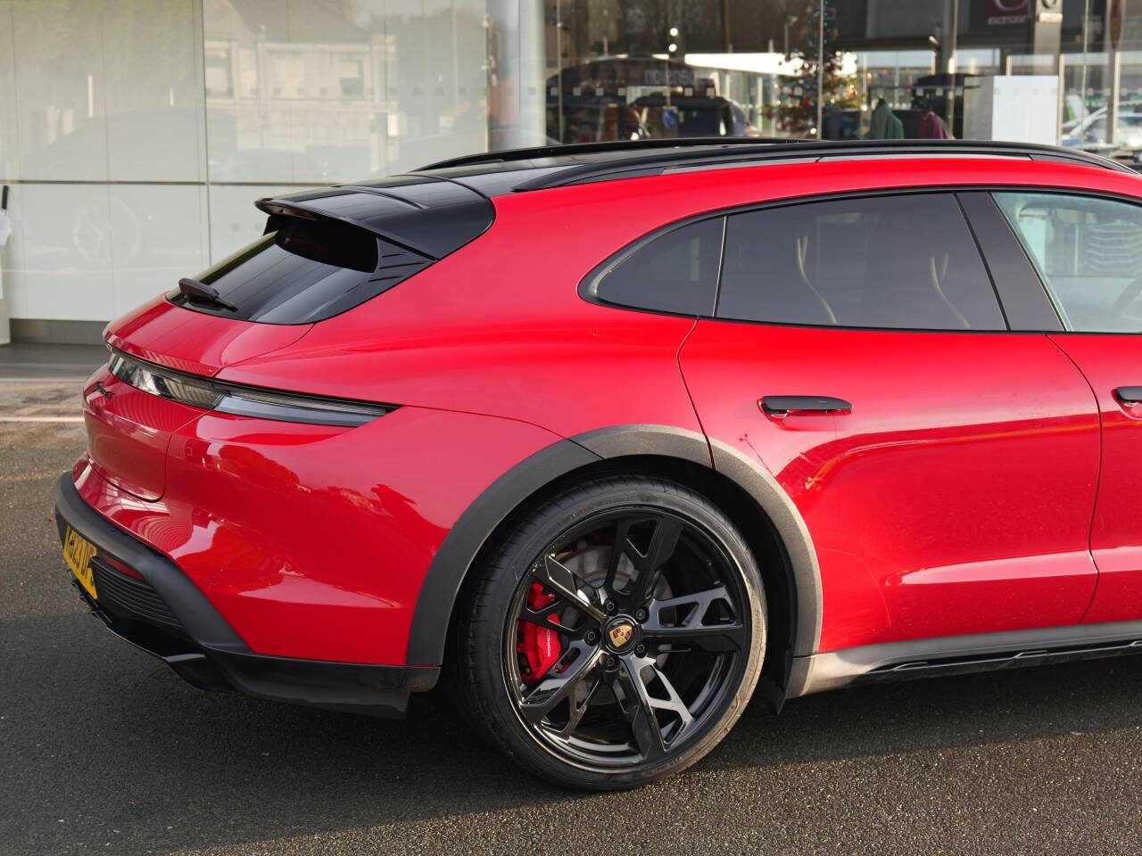 Roof Rails in Black Aluminium, Electric folding Exterior Mirrors, Side Window Trims in Black (high-gloss), Door handles painted in black (high-gloss), Model Designation painted in Black (high-gloss), Inlays painted in Black (high-gloss), Sport Chrono Package including Compass Display on Dashboard, Power Steering Plus, Wheels painted in Black (high-gloss), 21-Inch Cross Turismo Design Wheels, Comfort seats (14-way, electric) with memory package, Ambient Lighting, 4+1 Seats, Massage Function front including Seat Ventilation front, Steering Wheel Heating (i.c.w. Sport Chrono Package and Leather Interior), Seat Belts Bordeaux Red, Porsche Crest on Headrests (Front and Outer Rear Seats), Personalised reversible Luggage Compartment Mat with Leather Edging and Loading Edge Protection, Door Sill Guards brushed Aluminium in Black, BOSE® Surround Sound System ⊗, Porsche Electric Sport Sound, Electric Charging Cover, 150kW on-board DC-DC converter, LED Matrix Main Headlights including Porsche Dynamic Light System Plus (PDLS Plus), Automatically dimming exterior and interior mirrors, Panoramic Roof, fixed, Windscreen with Grey Top-Tint, Privacy Glass, ParkAssist including Surround View, Lane Change Assist (blind spot monitoring), HomeLink® (Garage Door Opener), Preparation for Porsche dash cam