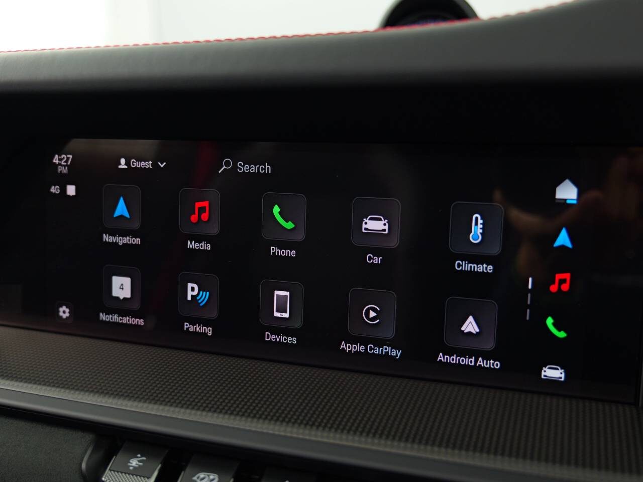 Power Steering Plus, Lifting system front axle, Brake Calipers painted in Black (high-gloss), Wheels painted in Satin Black, Rev counter in Carmine Red, Fire extinguisher, Porsche Crest on Storage Compartment Lid Race-Tex, BOSE® Surround Sound System, Exclusive Design Taillights, ‘PORSCHE’ Logo LED Door Courtesy Lights, Windscreen with grey top-tint, Privacy Glass, Ioniser, Porsche InnoDrive including adaptive cruise control